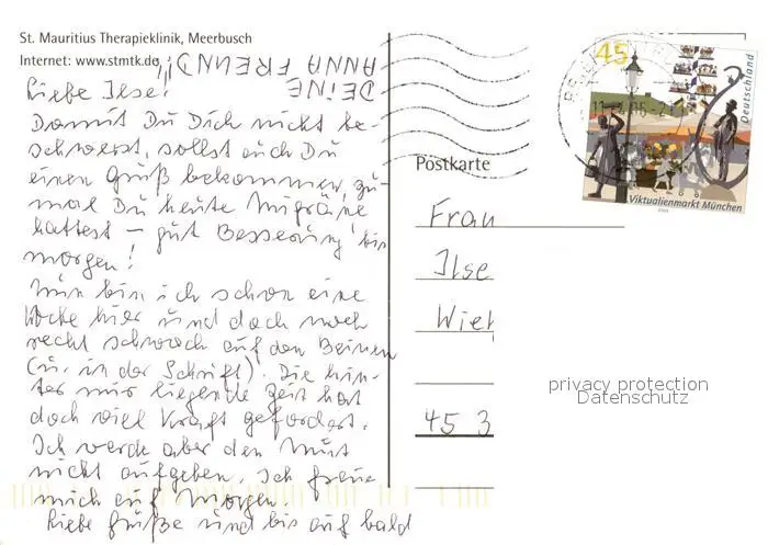 Meerbusch St Mauritius Therapieklinik Meerbusch postalisch gelaufen 2006 Erhaltung siehe scans [FriedD77] Frierer