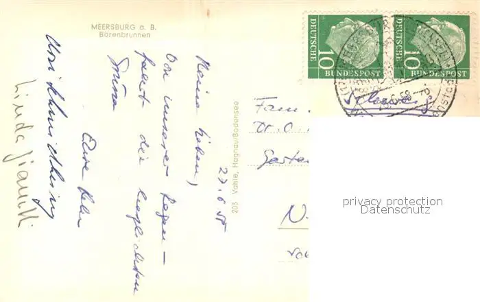 Meersburg_Bodensee Baerenbrunnen Meersburg Bodensee postalisch gelaufen 1958 Erhaltung siehe scans [KathaD81] Kathoren