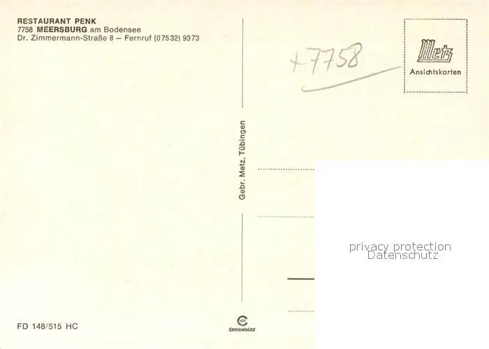 Meersburg_Bodensee Bodenseefaehre Restaurant Penk Gaststube Terrasse Meersburg Bodensee postalisch nicht gelaufen nach 1965 Erhaltung siehe scans [FriedD77] Frierer