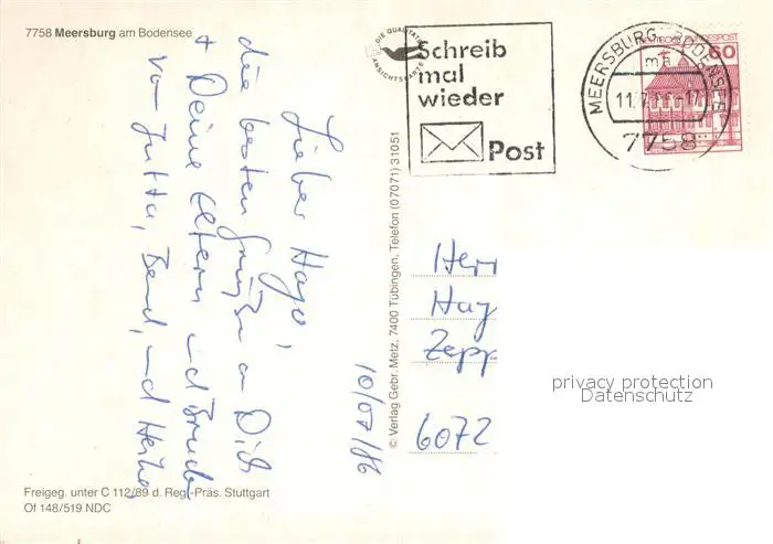 Meersburg_Bodensee Fliegeraufnahme Teilansicht Meersburg Bodensee postalisch gelaufen 1986 Erhaltung siehe scans [LiesaD40] LiesID40