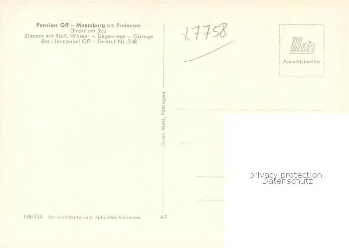 Meersburg_Bodensee Pension Off Terrasse Meersburg Bodensee postalisch nicht gelaufen nach 1965 Erhaltung siehe scans [FriedD77] Frierer