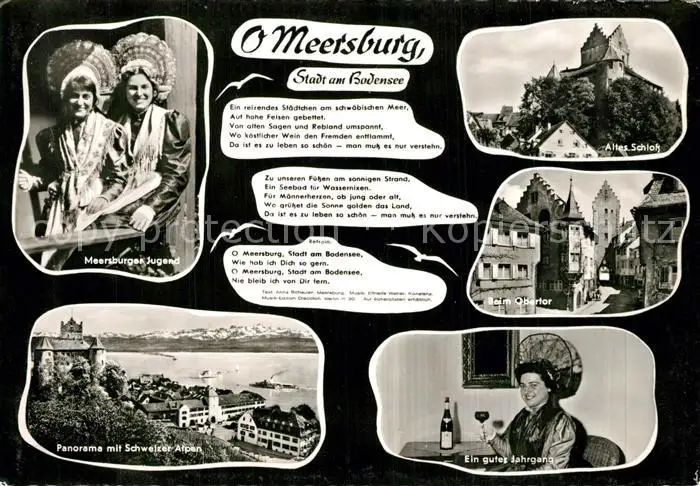 Meersburg_Bodensee Tracht Obertor Schlo? Seepartie mit Alpen Meersburg Bodensee postalisch nicht gelaufen nach 1965 Erhaltung siehe scans [LiesaD40] LiesID40