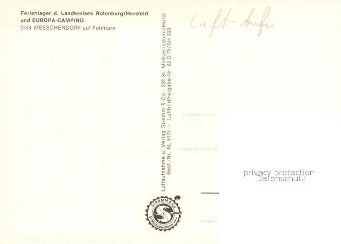 Meeschendorf_Fehmarn Ferienlager Europa Camping Fliegeraufnahme Meeschendorf Fehmarn postalisch nicht gelaufen nach 1965 Erhaltung siehe scans [FriedD77] Frierer