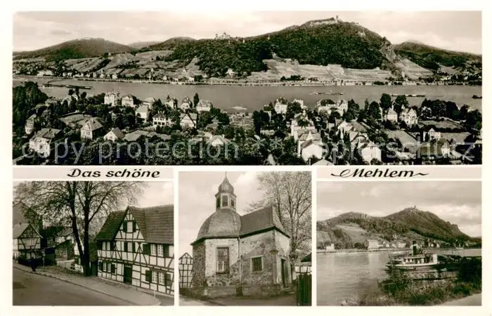 AK / Ansichtskarte Mehlem_Godesberg_Bonn Panorama Blick ueber den Rhein Fachwerkhaus Kirche Rheindampfer