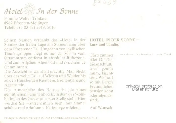 Meilingen Hotel Restaurant In der Sonne Meilingen postalisch nicht gelaufen nach 1965 Werbekarte (keine Postkarte) Erhaltung siehe scans [FriedD77] Werbekarte (keine Postkarte) Frierer