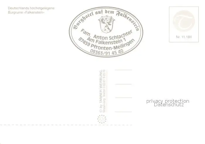 Meilingen_Pfronten Burghotel auf dem Falkenstein postalisch nicht gelaufen nach 1965 Erhaltung siehe scans [WerneD78] WernPID7
