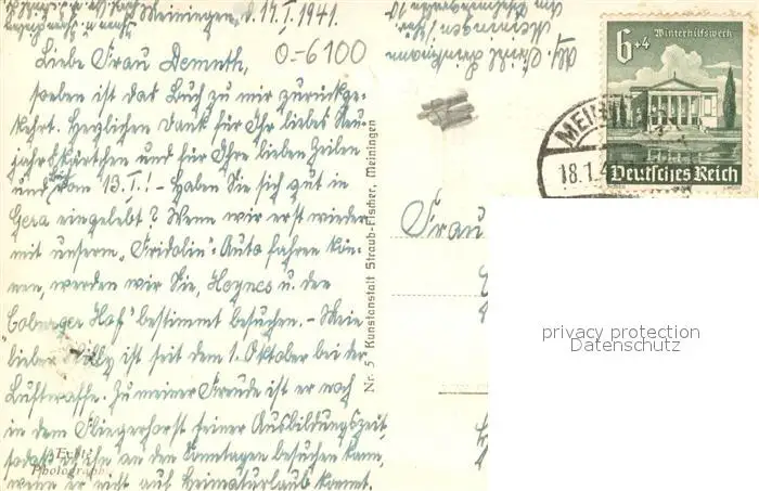 Meiningen_Thueringen Partie am Landestheater Meiningen Thueringen postalisch gelaufen 1941 Erhaltung siehe scans [FriedD77] Frierer