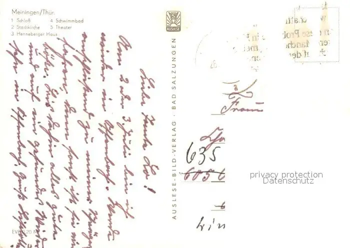 Meiningen_Thueringen Schloss Schwimmbad Stadtkirche Theater Henneberger Haus Meiningen Thueringen postalisch gelaufen nach 1965 Erhaltung siehe scans [PaolaD17] PaolPID1