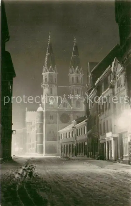 Meiningen_Thueringen im Schnee Blick zur Stadtkirche Meiningen Thueringen postalisch nicht gelaufen 1965 Erhaltung siehe scans [FriedD77] Frierer