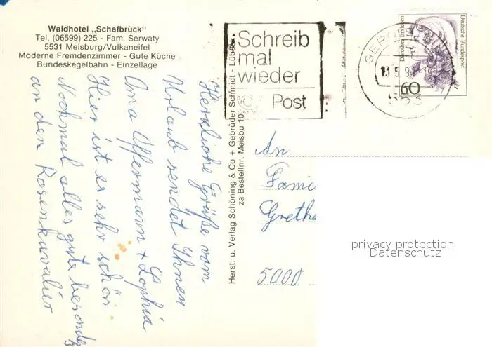 Meisburg Waldhotel Schafbrueck Gaststube Bar Meisburg postalisch gelaufen 1991 Erhaltung siehe scans [WerneD78] WernPID7