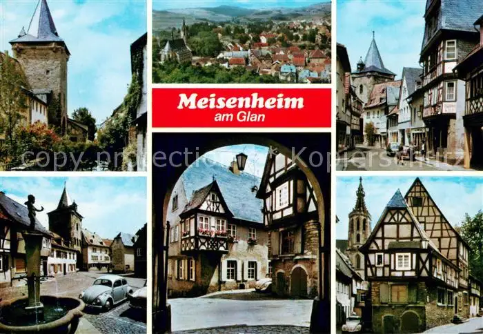 AK / Ansichtskarte Meisenheim_Glan Stadtturm Panorama Ortansichten Brunnen Fachwerkhaeuser Meisenheim_Glan