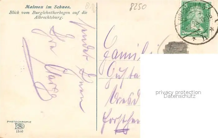 Meissen_Elbe_Sachsen Burglehntorbogen Blick auf Albrechtsburg im Winter Meissen_Elbe_Sachsen postalisch gelaufen 1928 Erhaltung siehe scans [FriedD77] Frierer