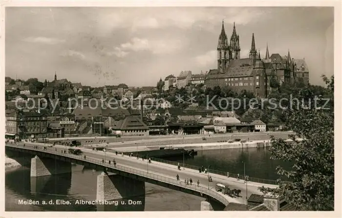 Meissen_Elbe_Sachsen Elbbruecke Albrechtsburg und Dom Meissen_Elbe_Sachsen postalisch gelaufen 1940 Erhaltung siehe scans [FriedD77] Frierer