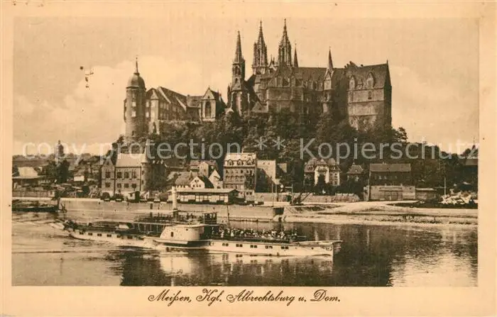 AK / Ansichtskarte Meissen_Elbe_Sachsen Elbe Dampfer Koenigliche Albrechtsburg und Dom Meissen_Elbe_Sachsen