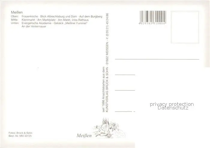 Meissen_Elbe_Sachsen Frauenkirche Albrechtsburg Dom Burgberg Kleinmarkt Marktplatz Rathaus Akademie Gebaeck Meissner Fummel Stadtmauer Meissen_Elbe_Sachsen postalisch nicht gelaufen nach 1965 Erhaltung siehe scans [FriedD77] Frierer
