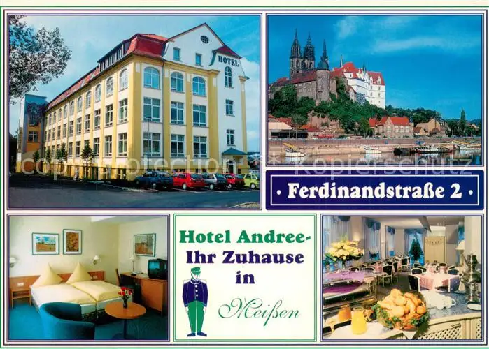 AK / Ansichtskarte Meissen_Elbe_Sachsen Hotel Andree Gaestezimmer Speisesaal Schloss Meissen_Elbe_Sachsen
