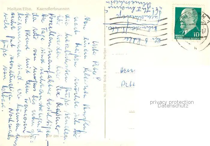 Meissen_Elbe_Sachsen Kaendlerbrunnen Meissen_Elbe_Sachsen postalisch gelaufen nach 1965 Erhaltung siehe scans [WerneD78] WernPID7