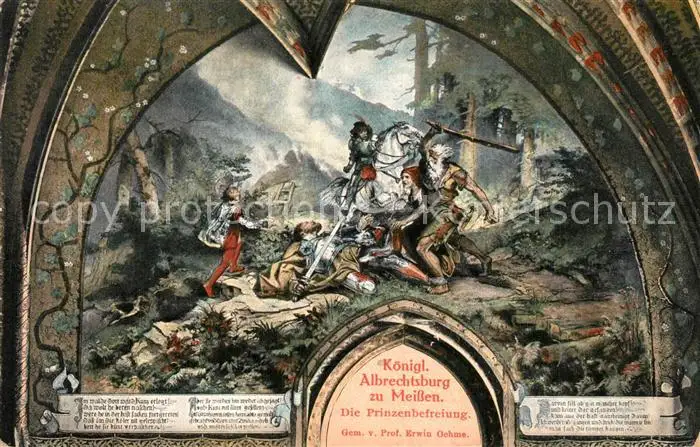 Meissen_Elbe_Sachsen Koenigliche Albrechtsburg Prinzenbefreiung Gemaelde Meissen_Elbe_Sachsen postalisch nicht gelaufen bis 1920 Erhaltung siehe scans [FriedD77] Frierer