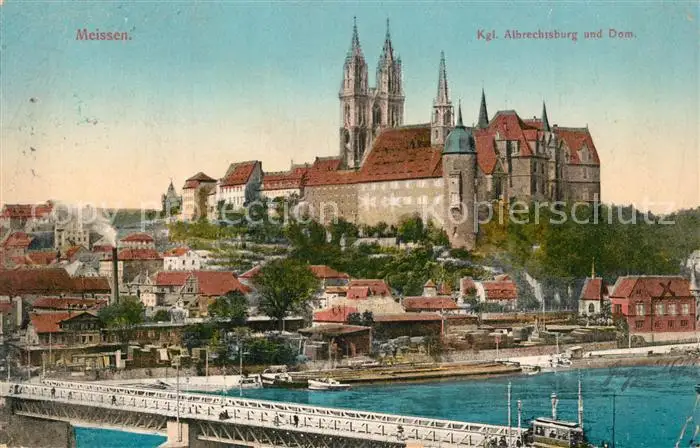 Meissen_Elbe_Sachsen Koenigliche Albrechtsburg und Dom Elbebruecke Meissen_Elbe_Sachsen postalisch gelaufen 1914 Erhaltung siehe scans [FriedD77] Frierer