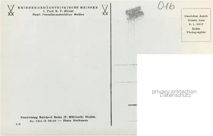 Meissen_Elbe_Sachsen Kriegergedaechtniskirche Innenansicht Porzellanmanufaktur Meissen Meissen_Elbe_Sachsen postalisch nicht gelaufen 1921-1965 Erhaltung siehe scans [FriedD77] Frierer