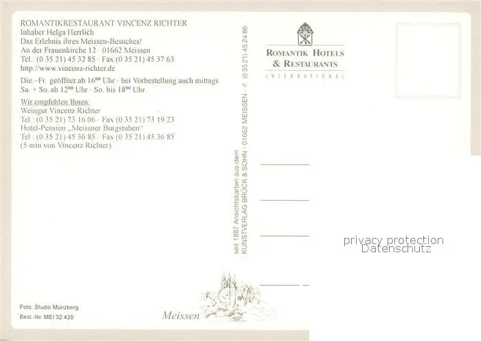 Meissen_Elbe_Sachsen Romantikrestaurant Vincenz Richter Meissen_Elbe_Sachsen postalisch nicht gelaufen nach 1965 Erhaltung siehe scans [FriedD77] Frierer