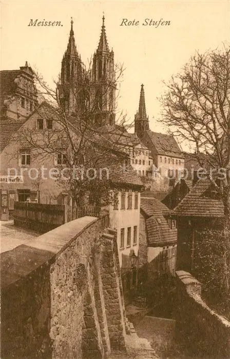 AK / Ansichtskarte Meissen_Elbe_Sachsen Rote Stufen Gasse Stadtmauer Blick zum Dom Meissen_Elbe_Sachsen