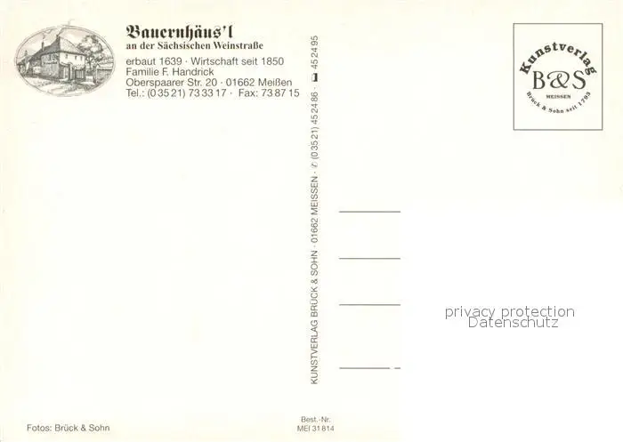 Meissen_Elbe_Sachsen Schloss Das Bauernhaeusl Original-Gaststube Meissen_Elbe_Sachsen postalisch nicht gelaufen nach 1965 Erhaltung siehe scans [WerneD78] WernPID7