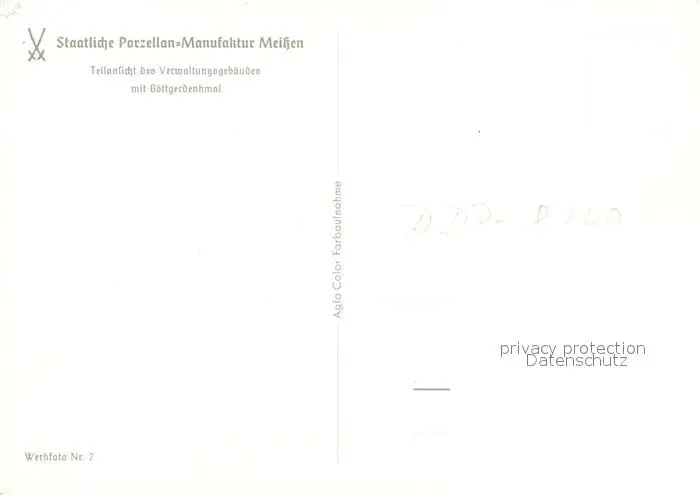Meissen_Elbe_Sachsen Staatliche Porzellanmanufaktur Verwaltungsgebaeude Boettgerdenkmal Meissen_Elbe_Sachsen postalisch nicht gelaufen 1921-1965 Erhaltung siehe scans [FriedD77] Frierer