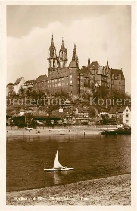 Meissen_Elbe_Sachsen Uferpartie an der Elbe Albrechtsburg und Dom 1000jaehrige Stadt Meissen_Elbe_Sachsen postalisch gelaufen 1929 Erhaltung siehe scans [FriedD77] Frierer