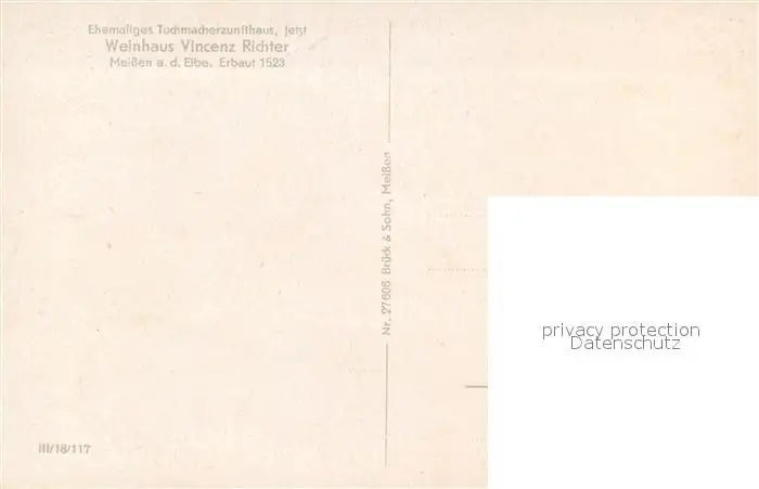 Meissen_Elbe_Sachsen Vincenz Richters Weinstuben Ehemaliges Tuchmacherzunfthaus Historisches Gebaeude Meissen_Elbe_Sachsen postalisch nicht gelaufen 1921-1965 Erhaltung siehe scans [FriedD77] Frierer