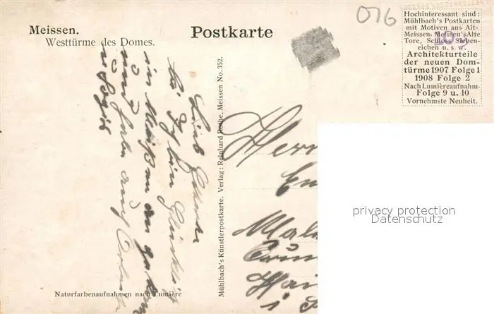 Meissen_Elbe_Sachsen Westtuerme des Domes Meissen_Elbe_Sachsen postalisch gelaufen bis 1920 Erhaltung siehe scans [FriedD77] Frierer