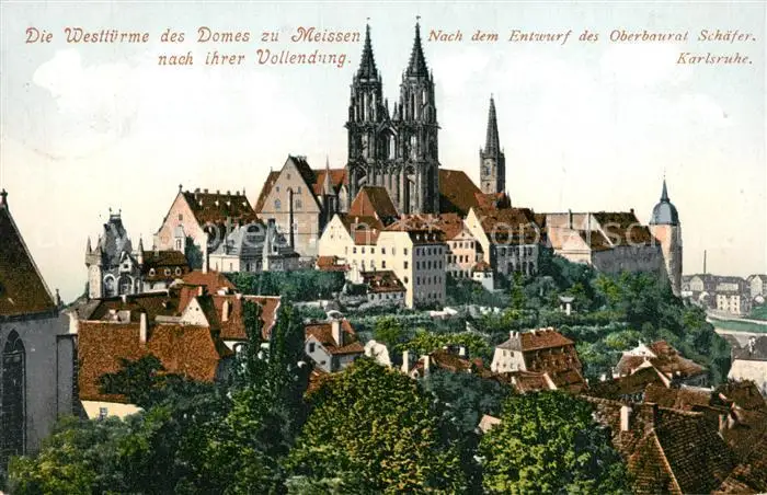 AK / Ansichtskarte Meissen_Elbe_Sachsen Westtuerme des Domes zu Meissen nach ihrer Vollendung nach Entwurf von Oberbaurat Schaefer Meissen_Elbe_Sachsen