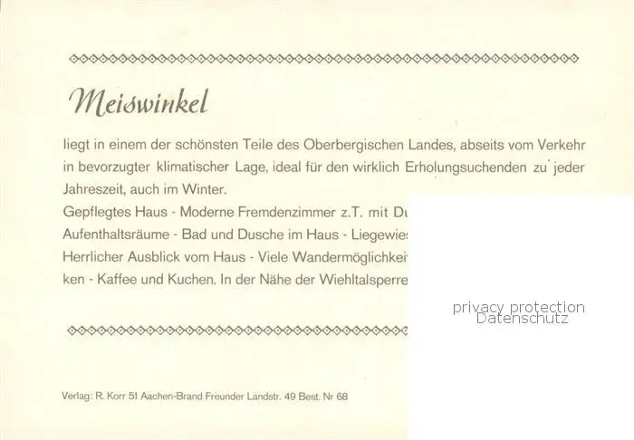 Meiswinkel Pension Haus am Walde Gastraum Panorama Meiswinkel postalisch nicht gelaufen nach 1965 Werbekarte (keine Postkarte) Erhaltung siehe scans [WerneD78] Werbekarte (keine Postkarte) WernPID7
