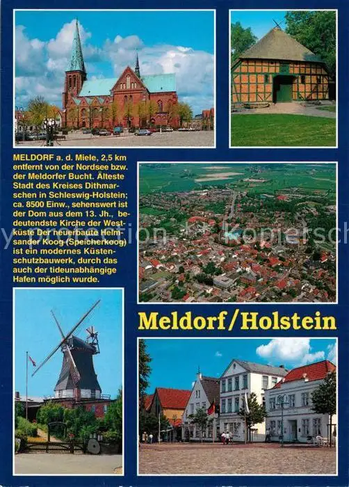 AK / Ansichtskarte Meldorf Kirche Scheune Fliegeraufnahme Windmuehle Hotels Meldorf