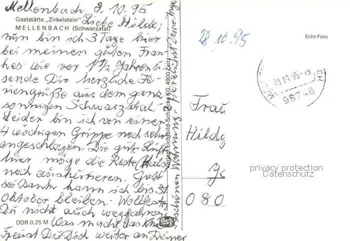 Mellenbach-Glasbach Gaststaette Zirkelstein Mellenbach-Glasbach postalisch gelaufen 1995 Erhaltung siehe scans [WerneD78] WernPID7