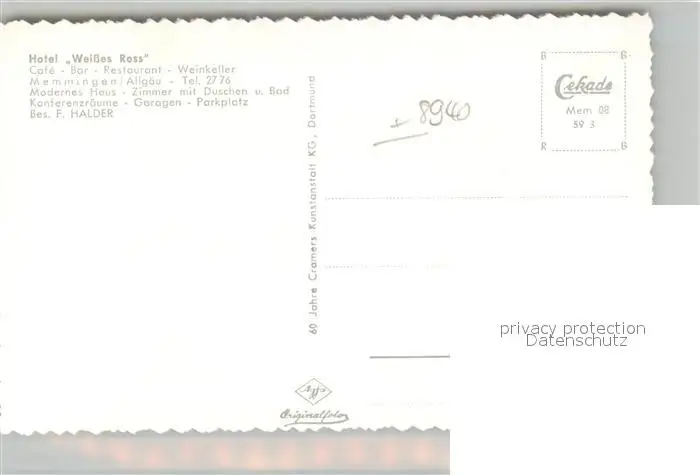 Memmingen Hotel Weisses Ross Memmingen postalisch nicht gelaufen nach 1965 Erhaltung siehe scans [WerneD78] WernPID7