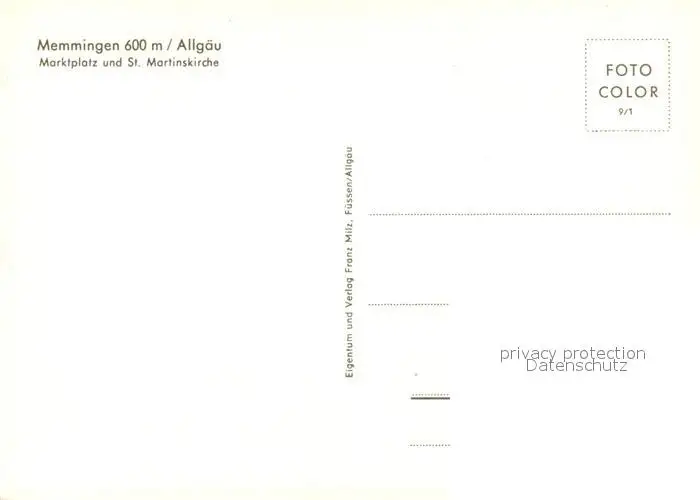 Memmingen Marktplatz mit St Martinskirche Memmingen postalisch nicht gelaufen nach 1965 Erhaltung siehe scans [FriedD77] Frierer