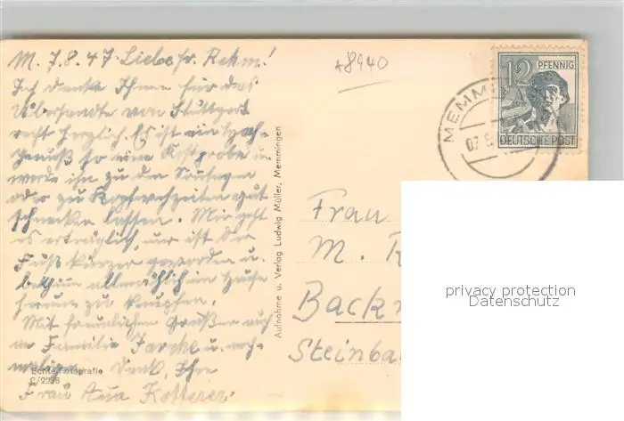 Memmingen Siebendaecher Memmingen postalisch gelaufen 1947 Erhaltung siehe scans [WerneD78] WernPID7