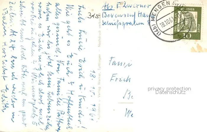 Mengen_Wuerttemberg Ortspartien Kirche Mengen Wuerttemberg postalisch gelaufen 1962 Erhaltung siehe scans [WerneD78] WernPID7