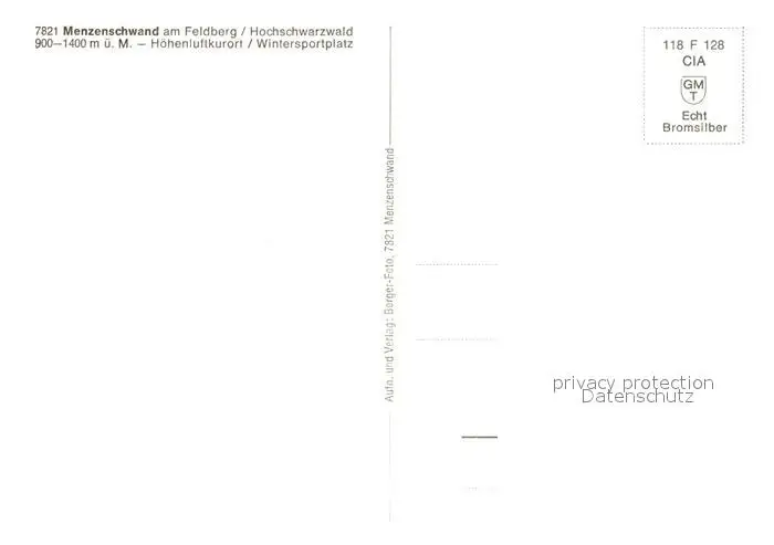 Menzenschwand Albschlucht Menzenschwand postalisch nicht gelaufen 1921-1965 Erhaltung siehe scans [NatalD47] NataID47