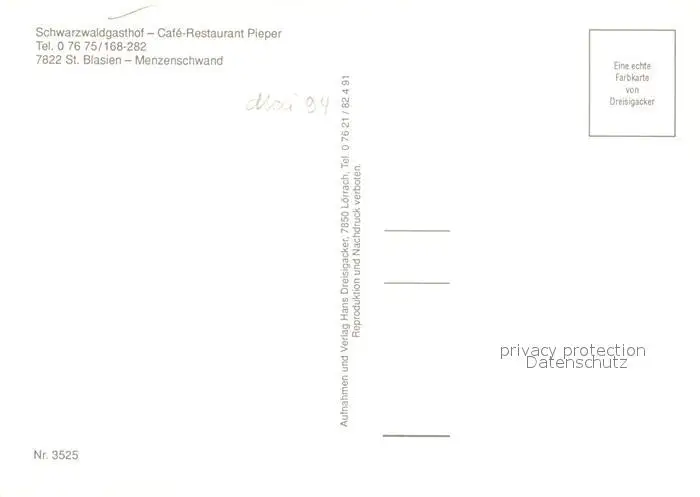 Menzenschwand Schwarzwaldgasthof Cafe Restaurant Pieper Landschaftspanorama Menzenschwand postalisch nicht gelaufen 1994 Erhaltung siehe scans [FriedD77] Frierer