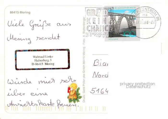 Mering Wehranlage St Michael mit Kirchbogen Skulptur Mering postalisch gelaufen 1998 Erhaltung siehe scans [FriedD77] Frierer