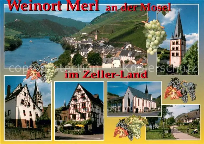 AK / Ansichtskarte Merl_Mosel Panorama Blick ueber die Mosel Kirche Glockenturm Fachwerkhaus Uferpromenade Merl_Mosel