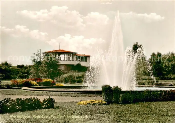 AK / Ansichtskarte Merzig Raststaette Pavillon im Stadtpark Fontaene Merzig