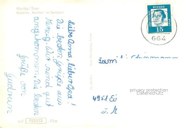 Merzig Raststaette Pavillon im Stadtpark Fontaene Merzig postalisch gelaufen 1921-1965 Erhaltung siehe scans [WerneD78] WernPID7