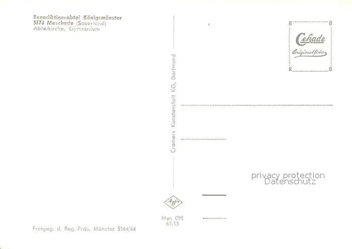 Meschede Kategorie Alte Ansichtskarten Postkarten bx93486 Meschede Benediktinerabtei Koenigsmuenster Fliegeraufnahme Meschede postalisch nicht gelaufen nach 1965 Erhaltung siehe scans [WerneD78]