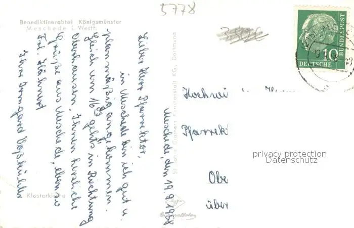 Meschede Benediktinerabtei Koenigsmuenster Meschede postalisch gelaufen 1958 Erhaltung siehe scans [WerneD78] WernPID7