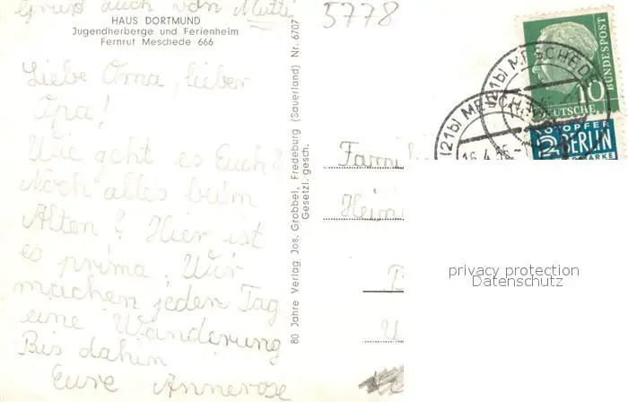 Meschede Haus Dortmund Meschede postalisch gelaufen 1956 Erhaltung siehe scans [WerneD78] WernPID7