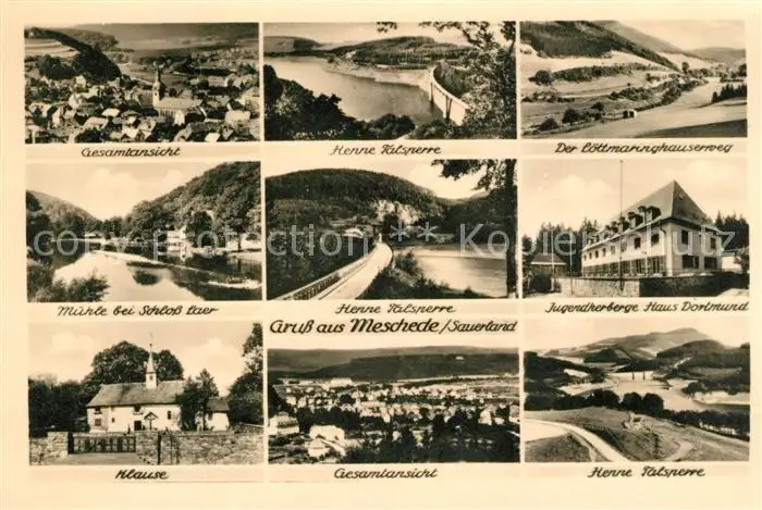 AK / Ansichtskarte Meschede Panorama Henne Talsperre Loettmaringhauserweg Muehle Jugendherberge Haus Dortmund Klause Meschede