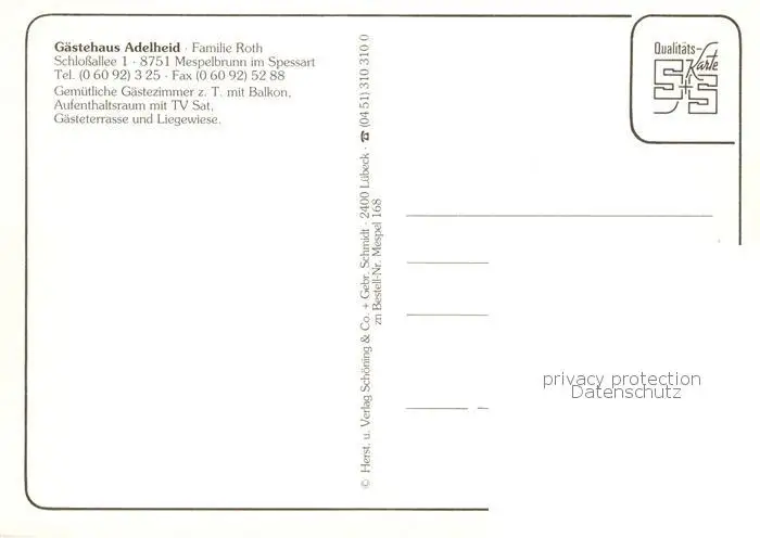Mespelbrunn Gaestehaus Adelheid Garten Maibaum Wasserschloss Mespelbrunn postalisch nicht gelaufen nach 1965 Erhaltung siehe scans [FriedD77] Frierer